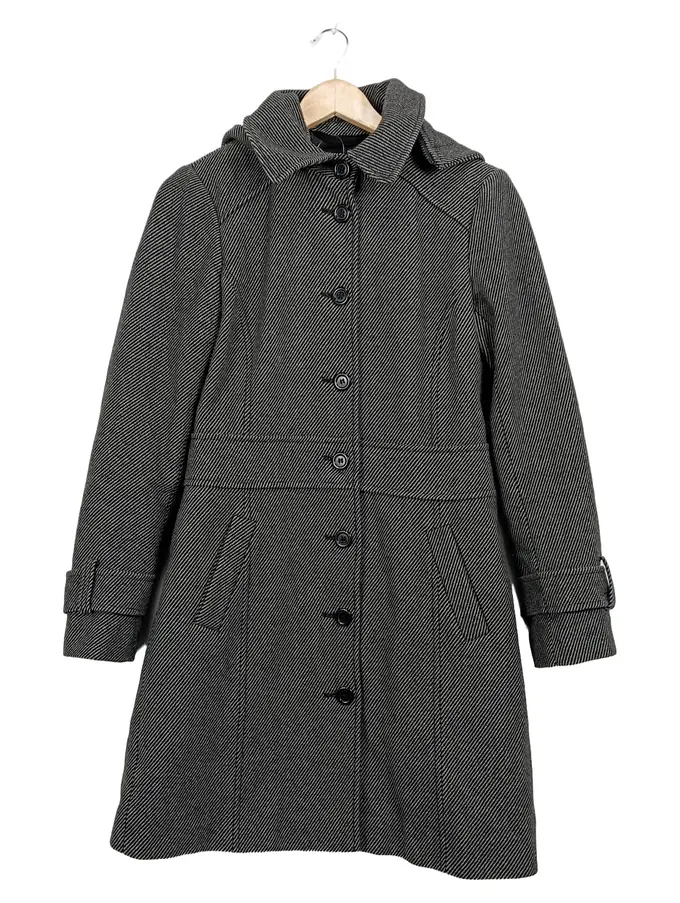 Damen Übergangsmantel Kapuze Fischgrät Gr. 36/S Grau Wolle