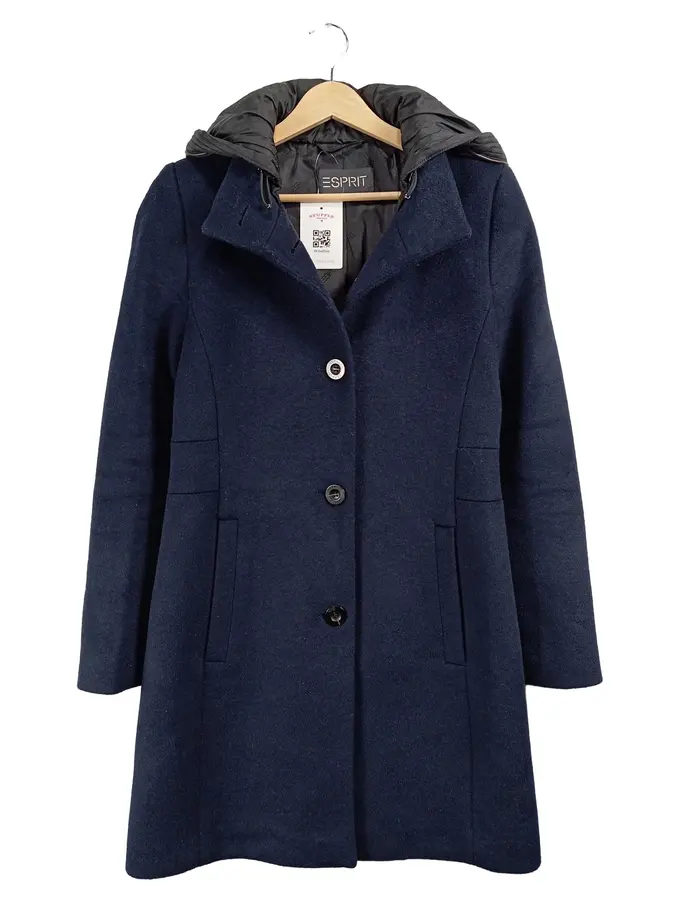 Damen Übergangsmantel Wollmantel Blau Gr. XS Kapuze Klassisch