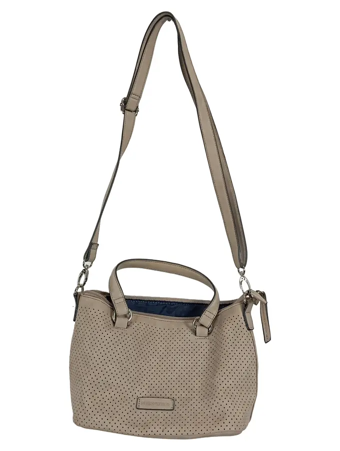 Damen Umhängetasche Beige Lochmuster Crossbody Bag Handtasche