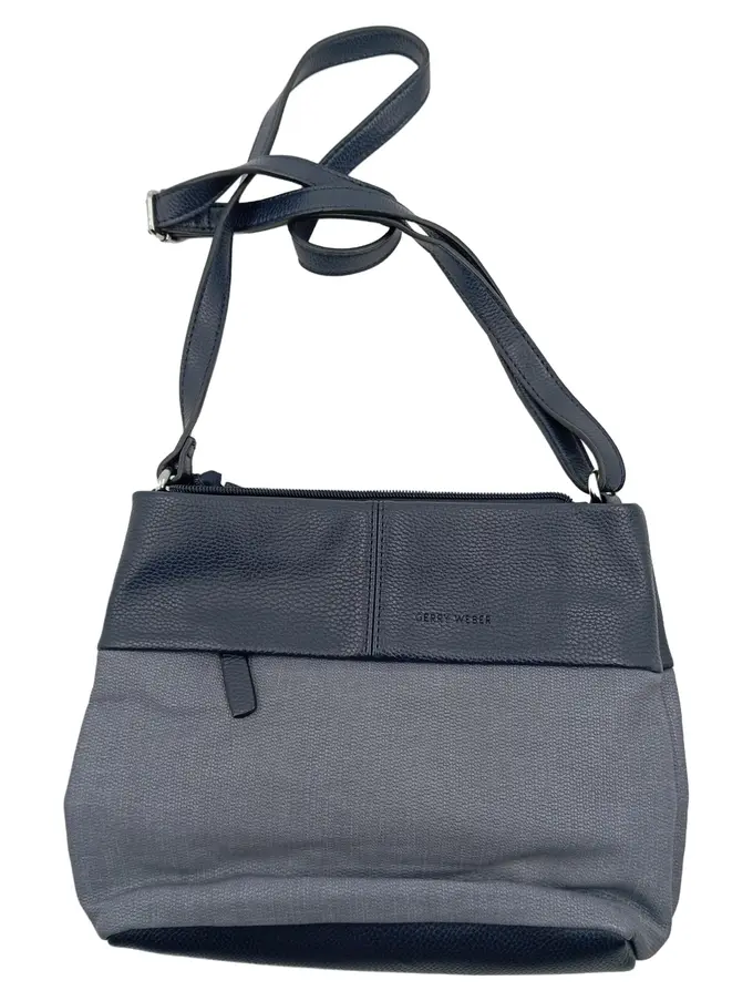 Damen Umhängetasche Leder Stoff Blau Grau Crossbody Bag