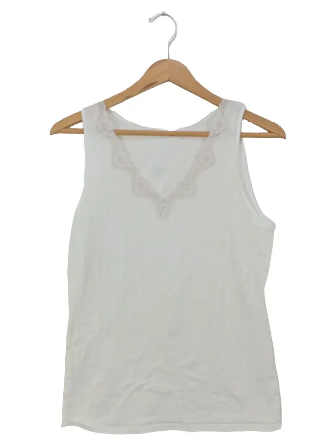 Damen Unterhemd M/38 Weiß Basic Casual Spitze Rippstrick