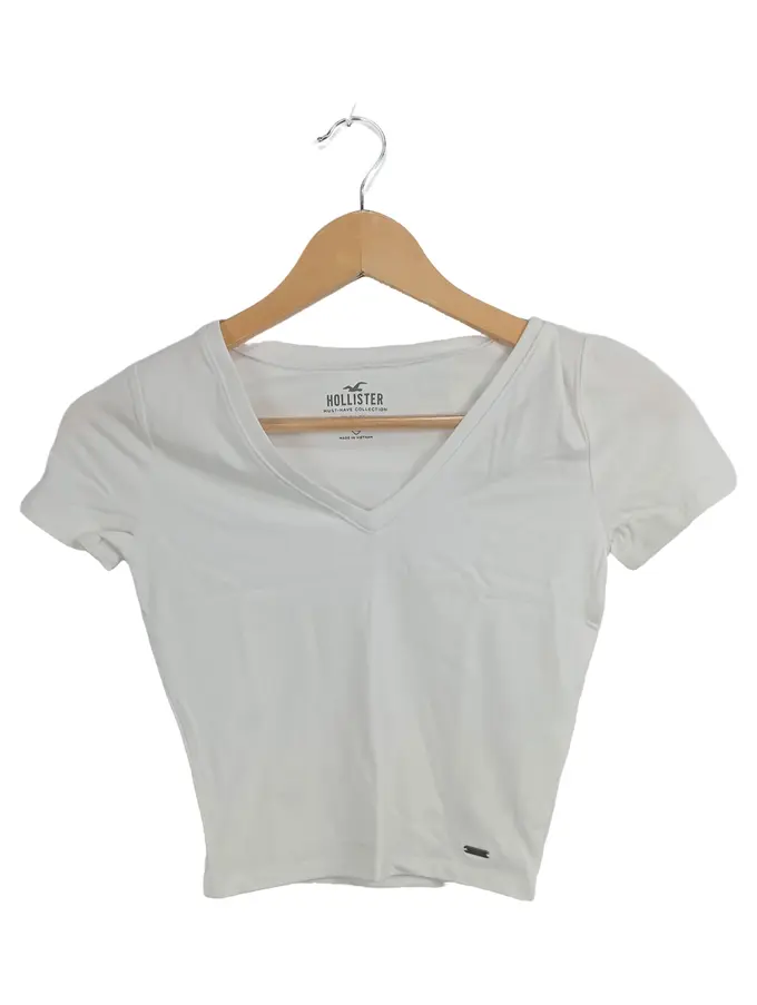 Damen V-Ausschnitt T-Shirt Gr. 34/XS Weiß Casual
