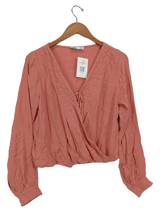 Damen Wickelbluse Pink Gr. 38/M Casual mit Spitze