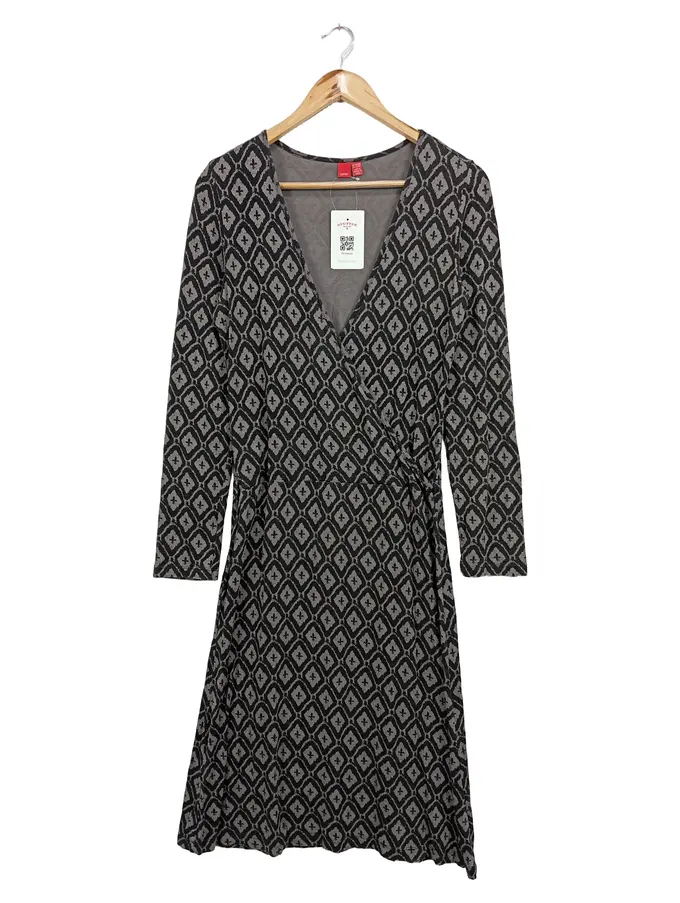 Damen Wickelkleid Gr. 38/M Grau Gemustert Viskose Freizeitkleid