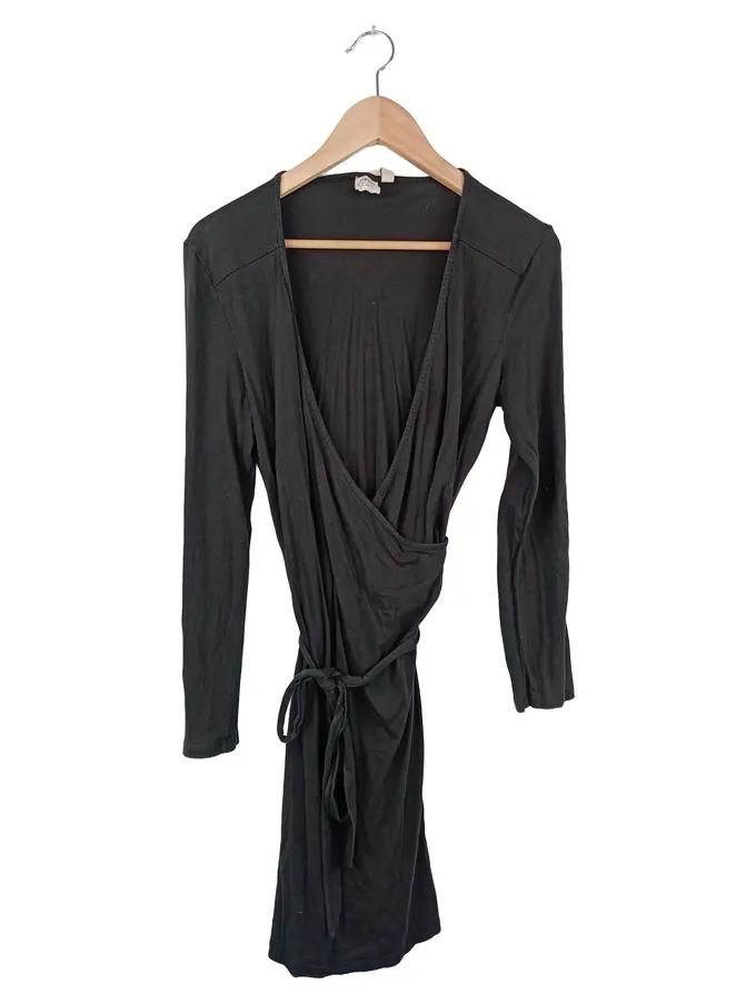 Damen Wickelkleid Gr. 40/L Schwarz Elegant Freizeitkleid Baumwolle Modal