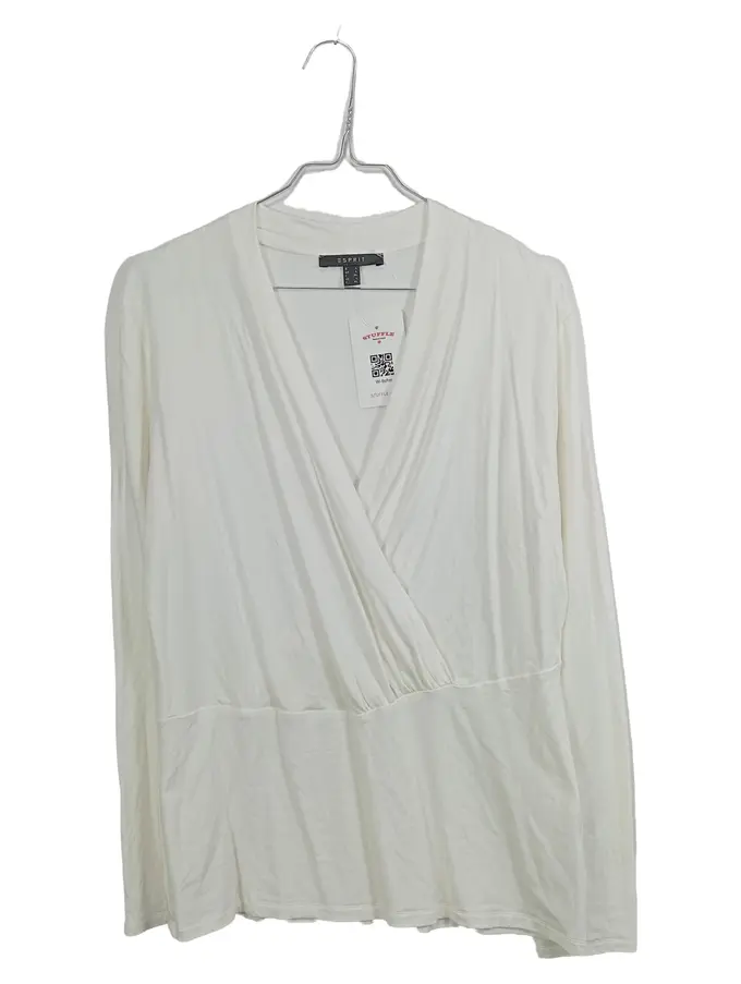 Damen Wickelshirt Langarmshirt Weiß Gr. L Elegant Viskose