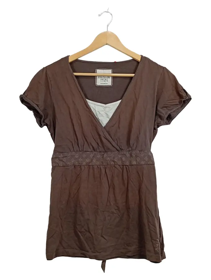 Damen Wickelshirt T-Shirt Gr. L Braun Kurzarm Baumwolle