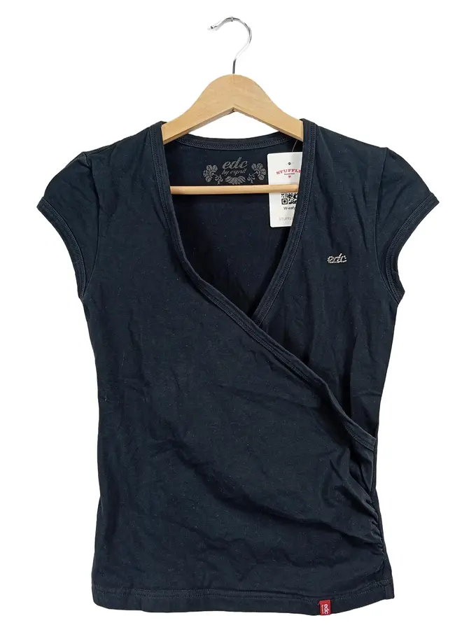 Damen Wickelshirt T-Shirt Kurzarm Schwarz Gr. S