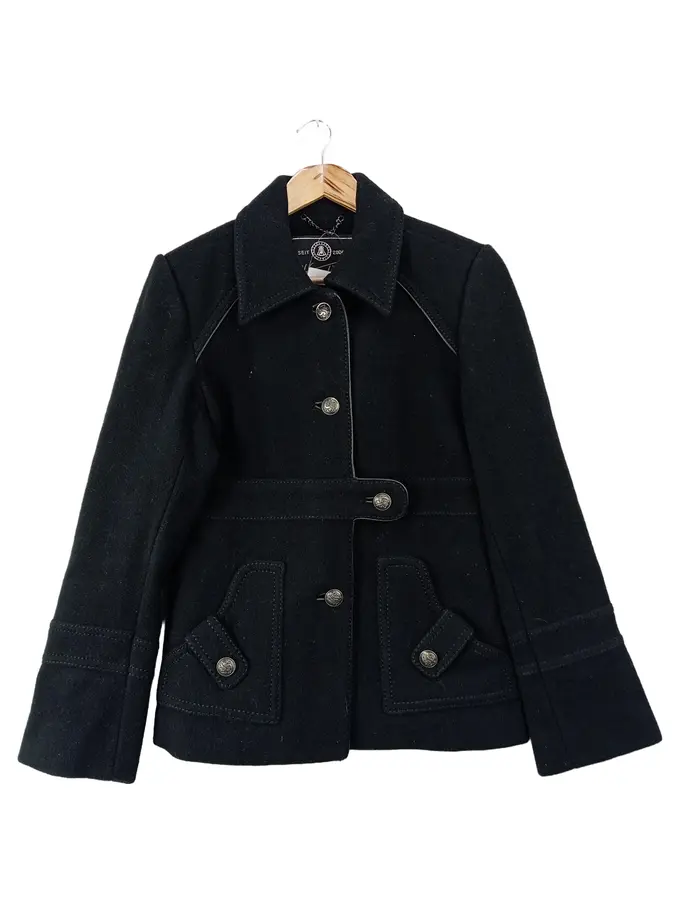 Damen Winterjacke 38/M Schwarz Klassisch Elegant Wolljacke