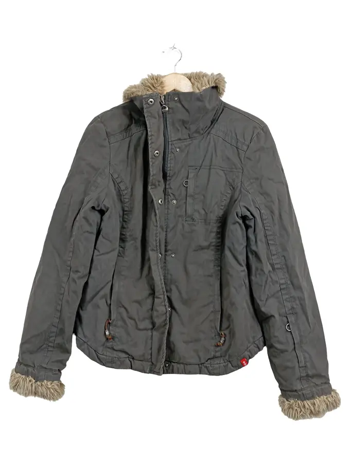 Damen Winterjacke Gr. L 40 Grau Fellbesatz Kunstfell