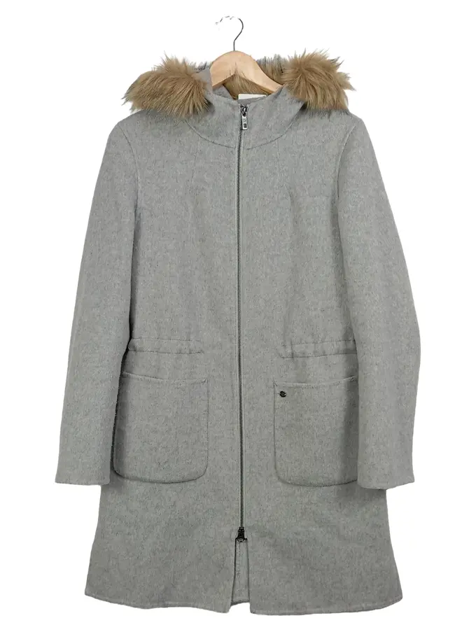 Damen Winterjacke Mantel Kapuze Fellbesatz Grau Einheitsgröße Casual