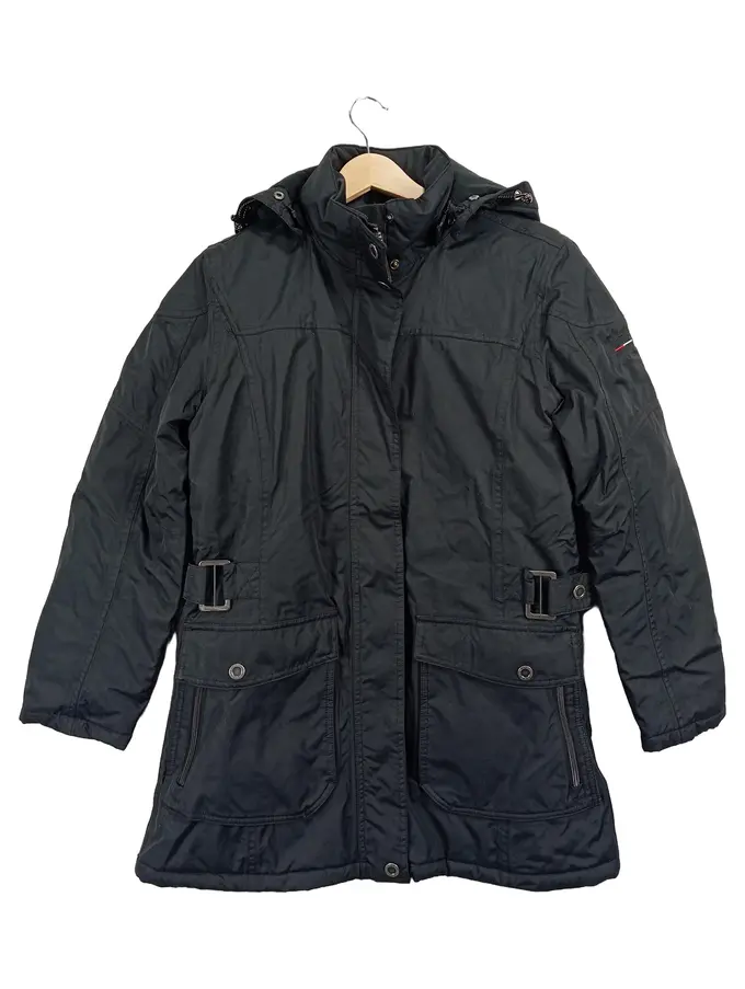 Damen Winterjacke Parka Kapuze Gesteppt Schwarz Gr. 38