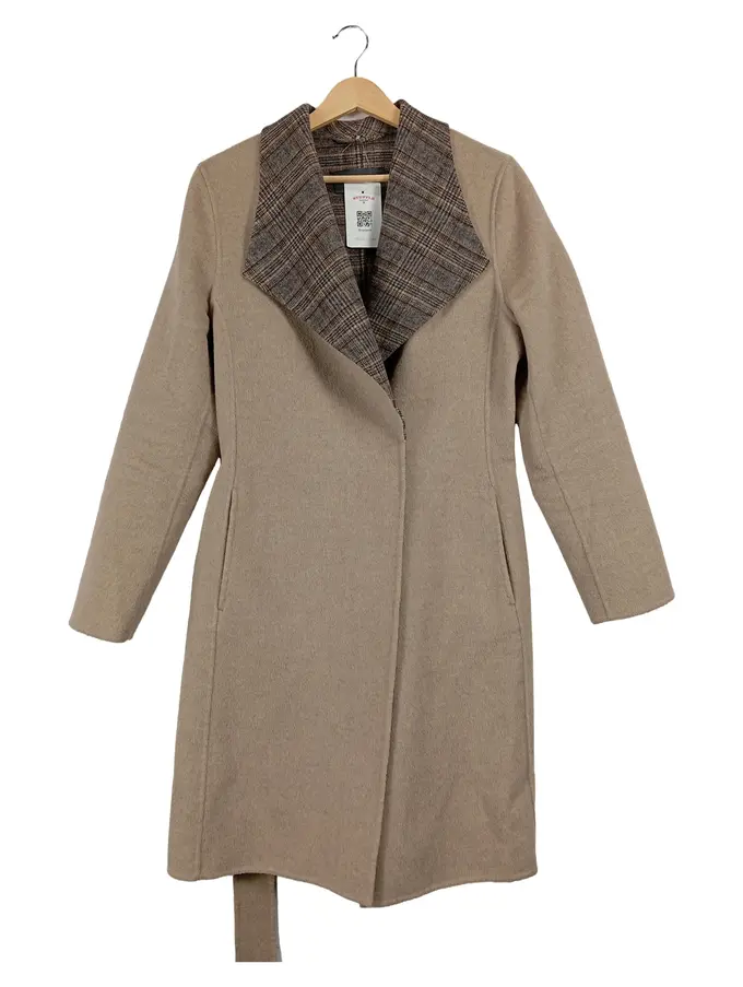 Damen Wollmantel Gr. 40 Beige Klassisch