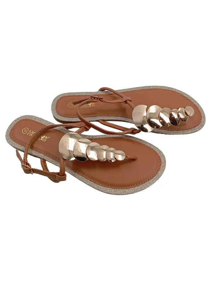 Damen Zehentrenner Sandalen Gr. 37 Braun Glitzer Metallic