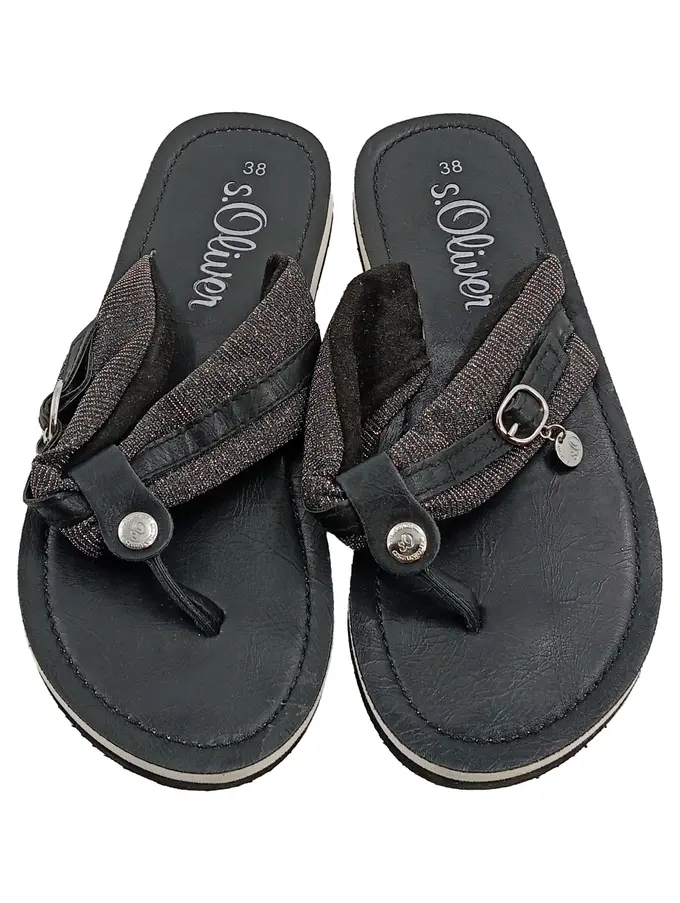 Damen Zehentrenner Sandalen Gr. 38 Schwarz Glitzer Flip Flop