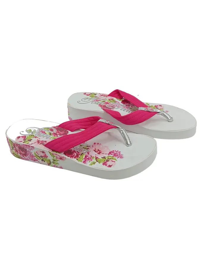 Damen Zehentrenner Sandalen Gr. 39 Pink Weiß Blumen