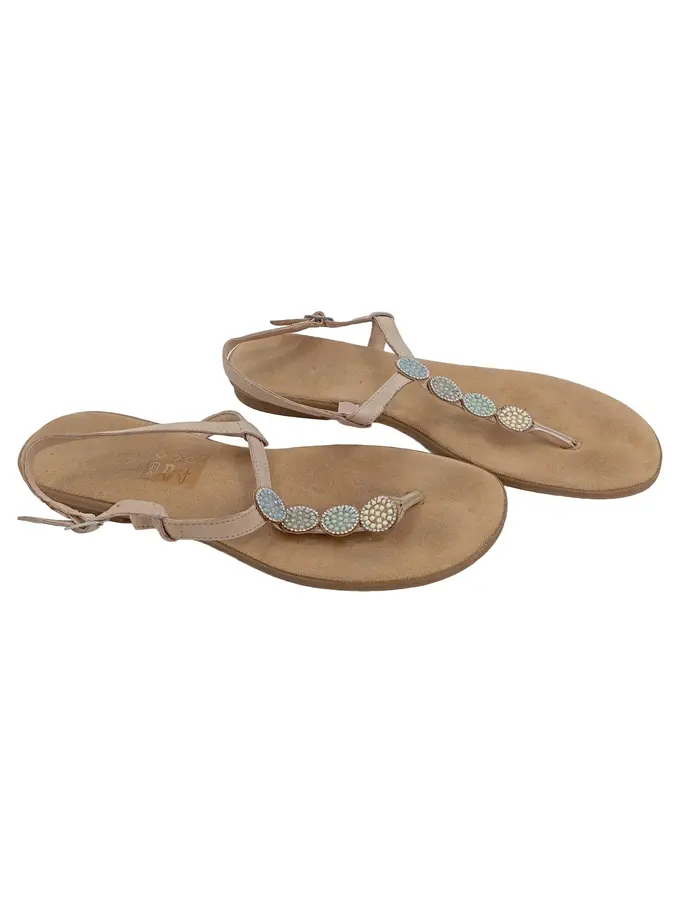 Damen Zehentrenner Sandalen Gr. 40 Beige Schmucksteine Sommer