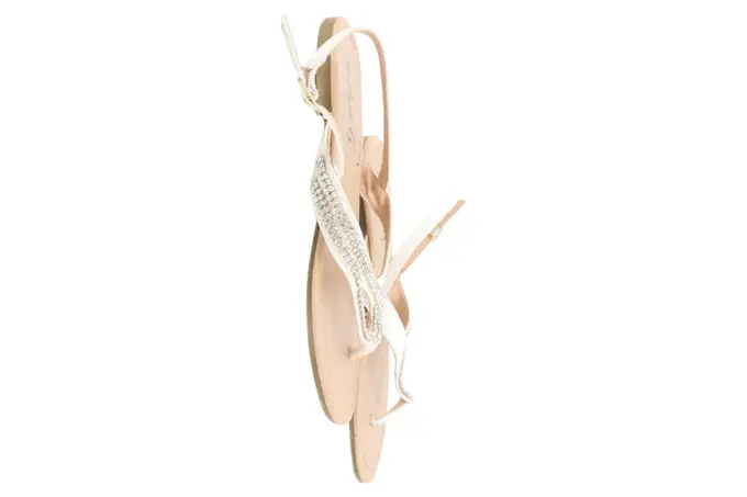 Damen Zehentrenner Sandalen Weiß Strass Gr. 38 Elegant Casual
