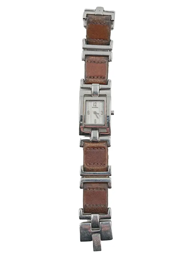 Damenuhr Armbanduhr Edelstahl Lederarmband Braun Silber Quarz