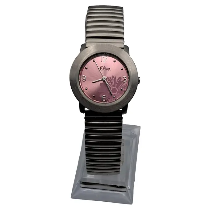 Damenuhr Armbanduhr rosa Zifferblatt Blumenmuster Metallarmband