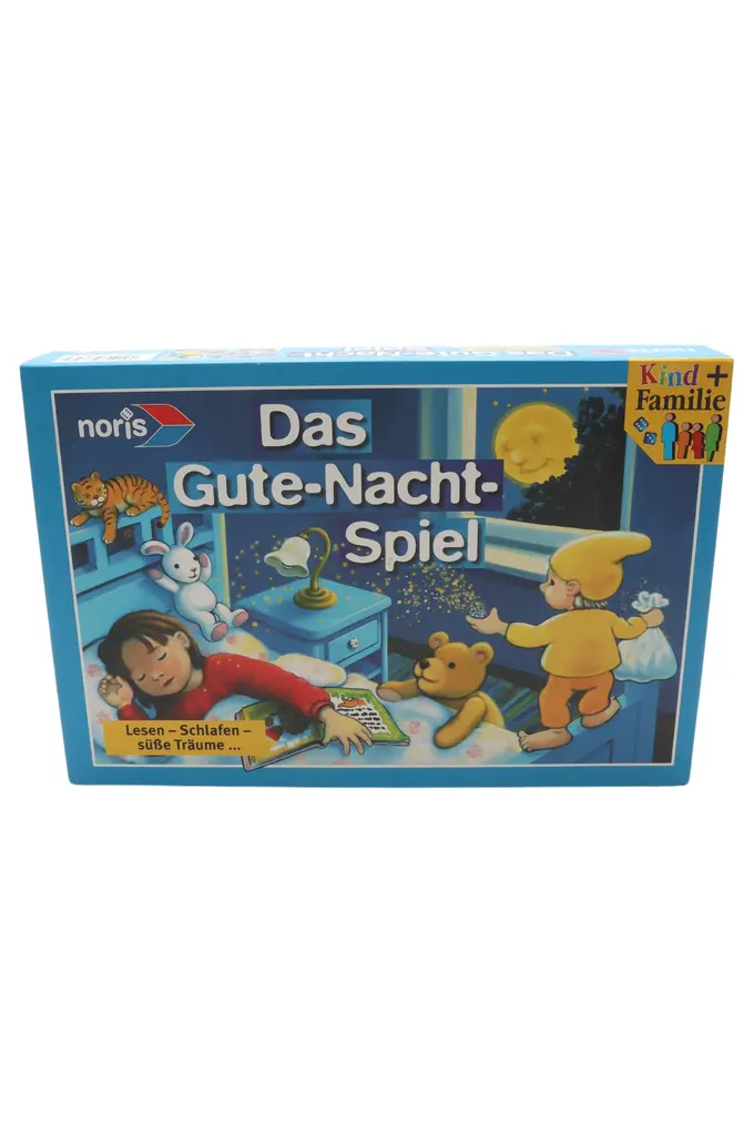 Das Gute-Nacht-Spiel von NORIS begleitet Kinder spielerisch durch die abendliche Routine vor dem Schlafengehen. Die Spieler lernen wichtige Schritte wie Zähneputzen, Waschen und das Anziehen des Schlafanzugs kennen. Ziel ist es, als Erster alle Freunde ins Bett zu bringen und einzuschlafen. Das Spiel fördert das Verständnis für die Gute-Nacht-Rituale und bereitet auf süße Träume vor.