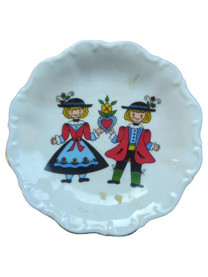 Dekoschale Porzellan Weiß Strukturmuster Trachtenpaar