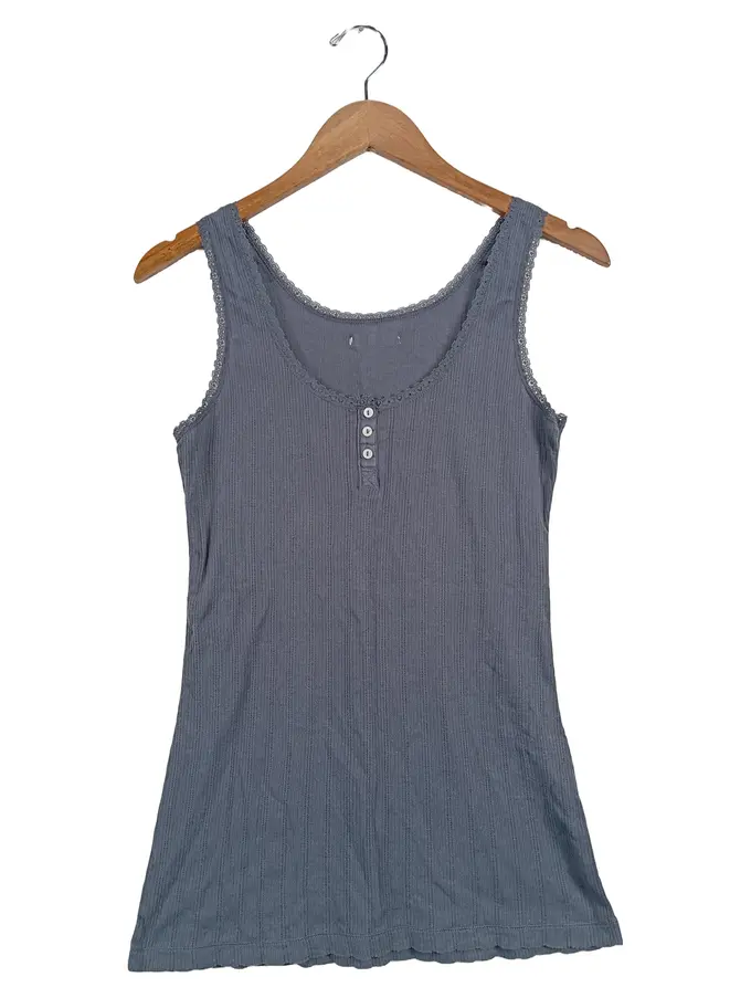 Denim Damen Unterhemd Tank Top Grau Spitze Knopfleiste Gr. M
