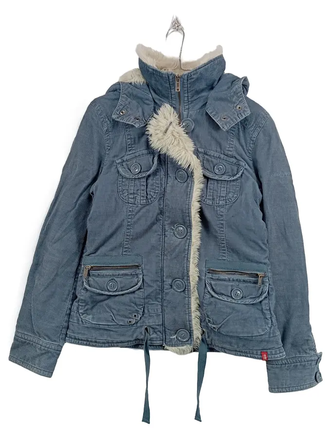 EDC by Damen Cord Jacke Gr. M Blau Fellkragen Winterjacke