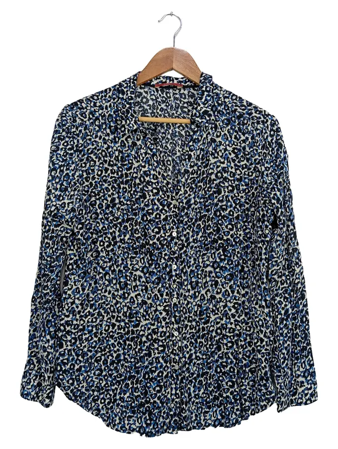 EDC Damen Bluse Gr. 36/S Mehrfarbig Tierdruck Langarm