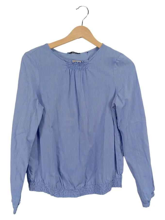 edc Damen Bluse Langarm Blau Gestreift Gr. 34/XS Casual Raffungen Baumwolle