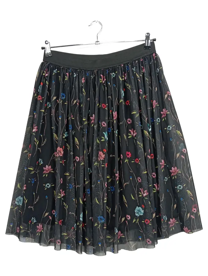 EDC Damen Faltenrock Blumenmuster Schwarz Gr. L Feminin Midi