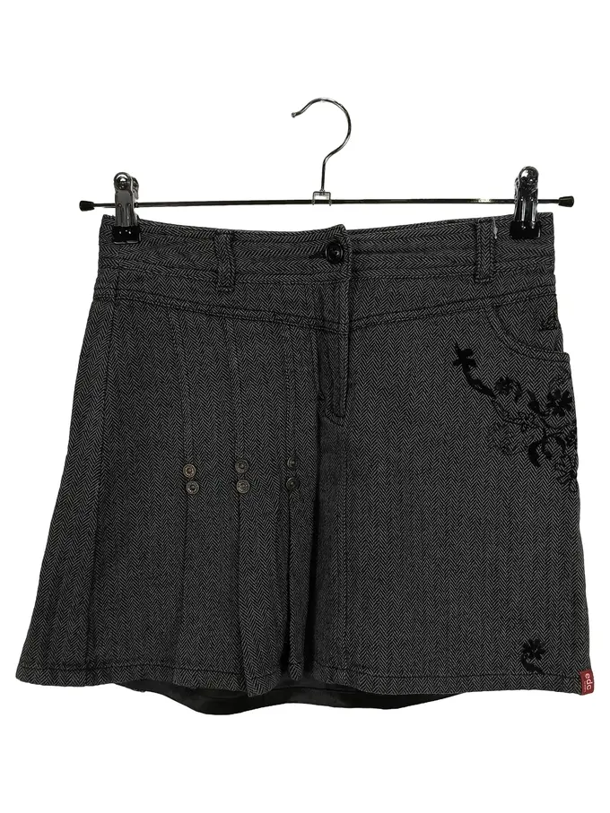 EDC Damen Faltenrock Minirock Fischgrätenmuster Grau Gr. 34 XS