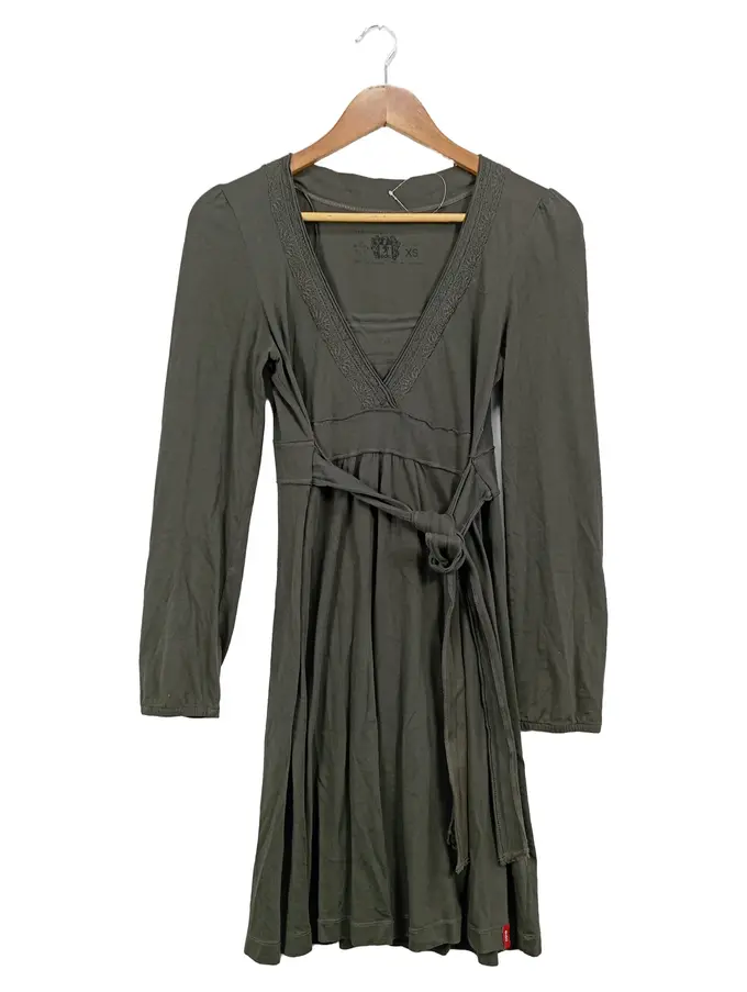 EDC Damen Freizeitkleid Langarm Gr. XS Oliv Casual Baumwolle