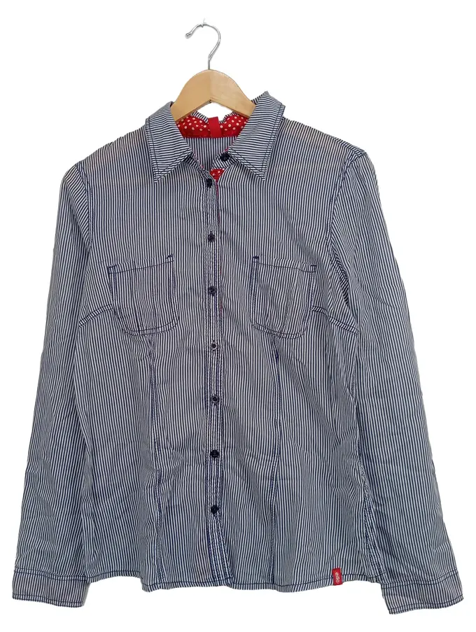 EDC Damen Hemdbluse L Gestreift Mehrfarbig Baumwolle Langarm Casual