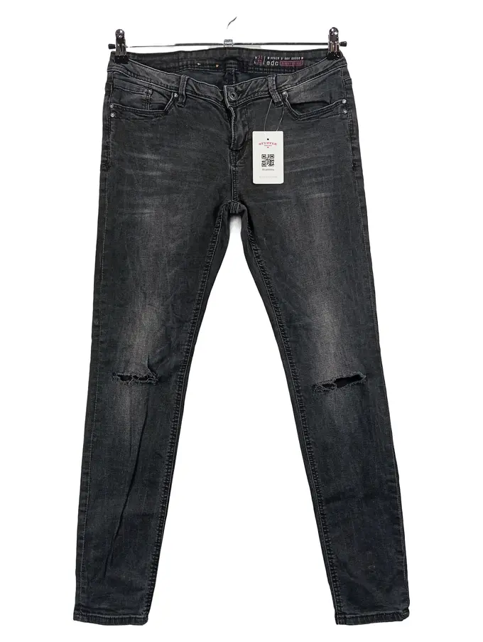 EDC Damen Jeans Slim Fit Grau W31 L29 Destroyed Casual Baumwolle
