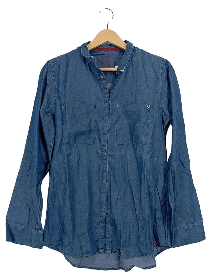 EDC Damen Jeanshemd Hemdbluse Blau Gr. 34/XS Baumwolle Casual