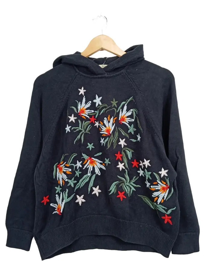 EDC Damen Kapuzenpullover Gr. 36/S Grau Blumenstickerei Hoodie
