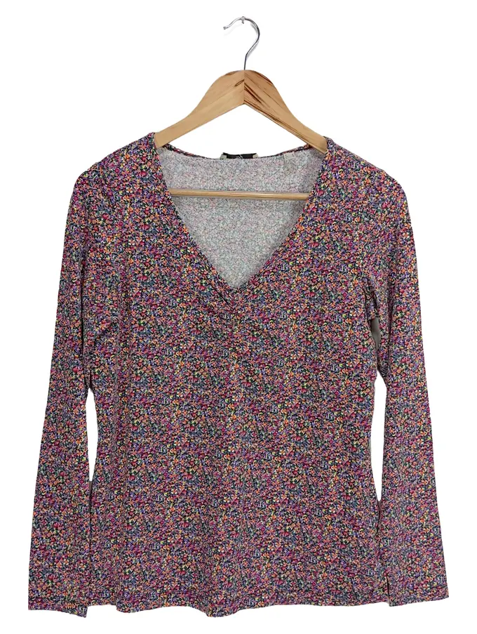 EDC Damen Langarmshirt Blumenmuster Mehrfarbig Gr. 38/M Casual Raffungen