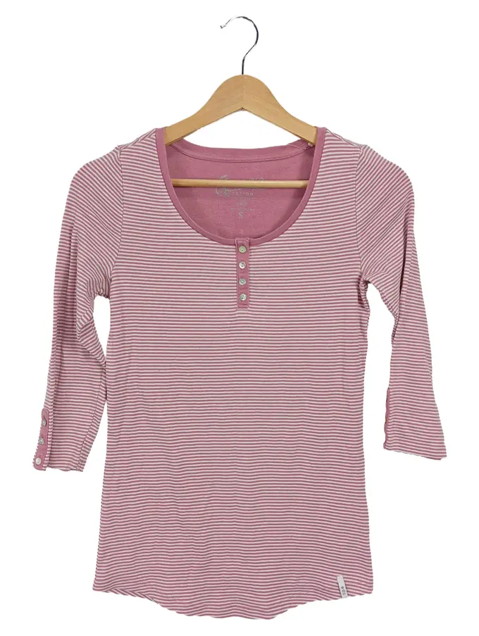 EDC Damen Langarmshirt gestreift Gr. 36/S Pink Baumwolle Casual