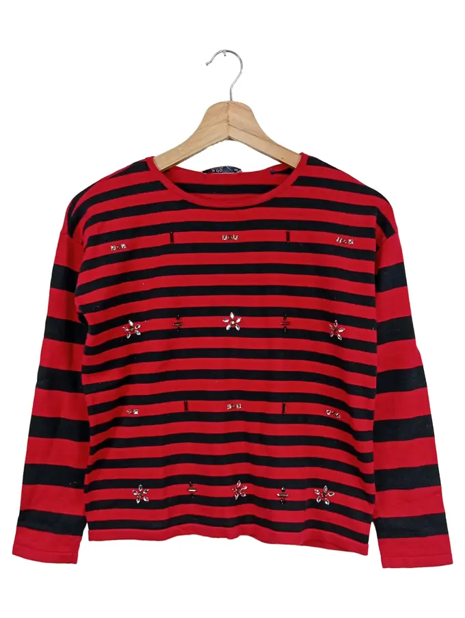 EDC Damen Langarmshirt gestreift mit Blumen Gr. 34/XS