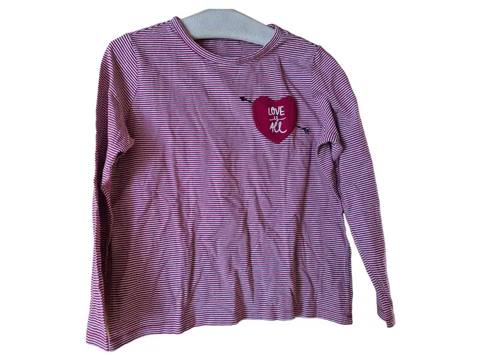 EDC Damen Langarmshirt gestreift Rot Gr. 40/L Herz Applikation Casual
