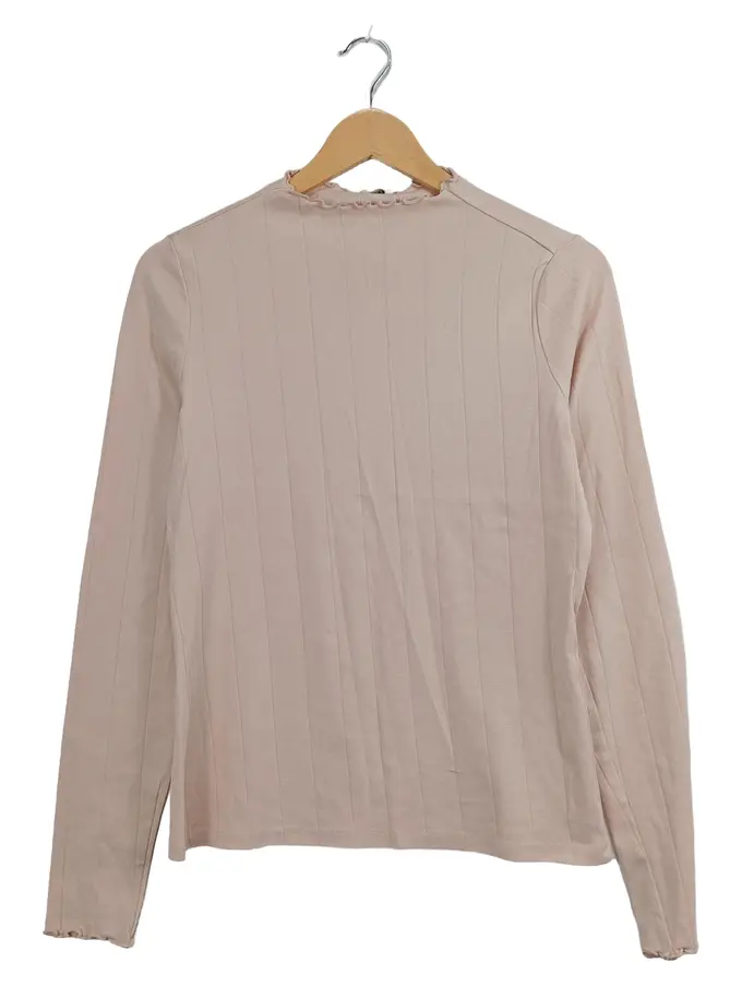 EDC Damen Langarmshirt Gr. 36 S Rosa Rippstrick Baumwolle Stehkragen Basic