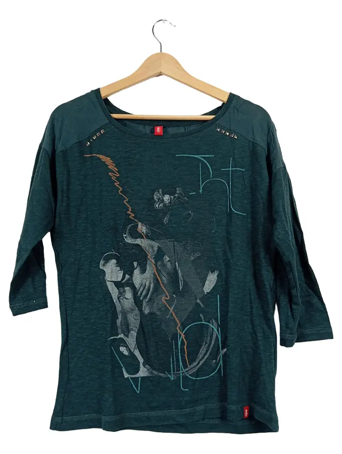 EDC Damen Langarmshirt Gr. 38/M Petrol Casual mit Nieten Print