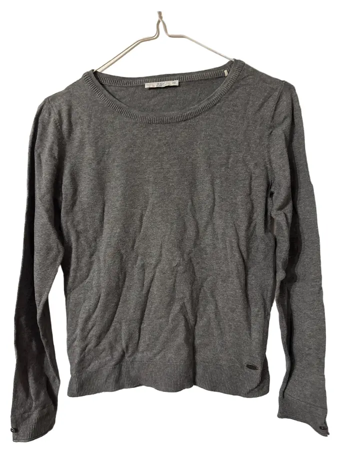 EDC Damen Langarmshirt Grau Gr. 34/XS Casual Baumwolle Viskose