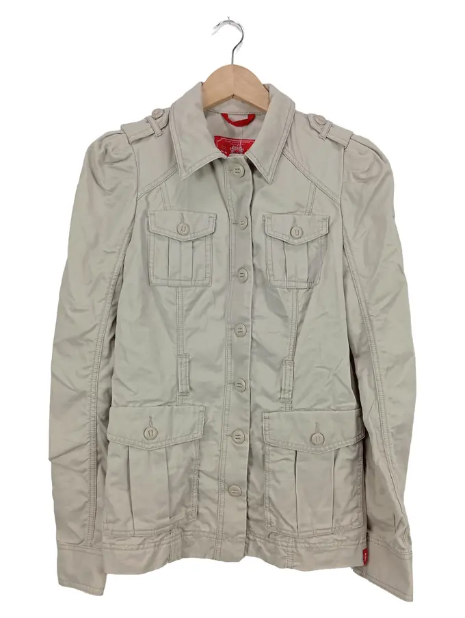 EDC Damen Leichte Jacke Gr. 40/L Beige Casual Baumwolle Übergangsjacke