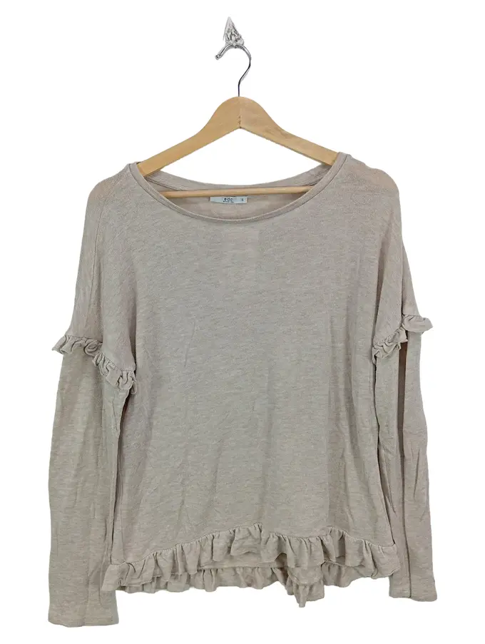 EDC Damen Pullover Beige Gr. 36/S Rüschen Langarm Freizeit
