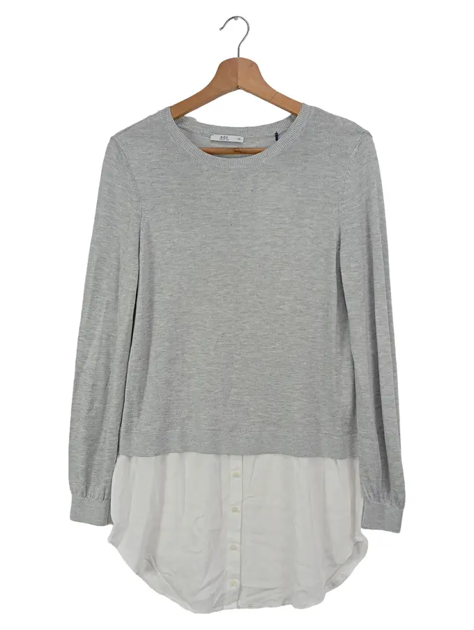 edc Damen Pullover Grau 32/XS Viskose Layer-Look Langarm Casual