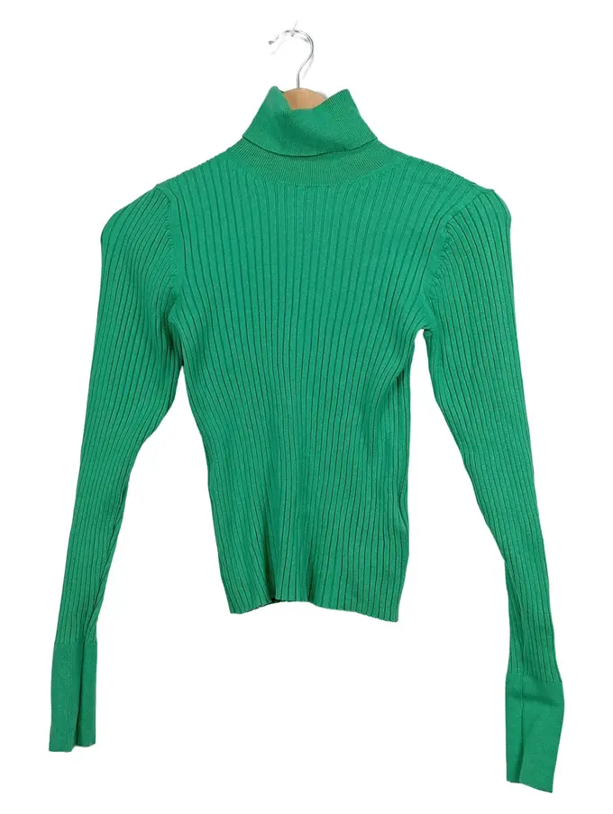 EDC Damen Pullover Rollkragen Rippstrick Gr. 34 XS Grün Viskose Mix Langarm