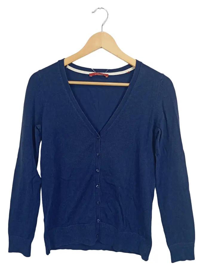 EDC Damen Strickjacke Blau Gr. 34/XS Casual V-Ausschnitt Knopfleiste