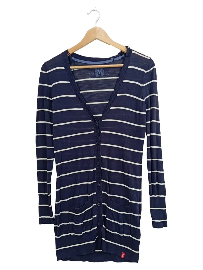 EDC Damen Strickjacke gestreift Blau Gr. 36/S Baumwolle Casual